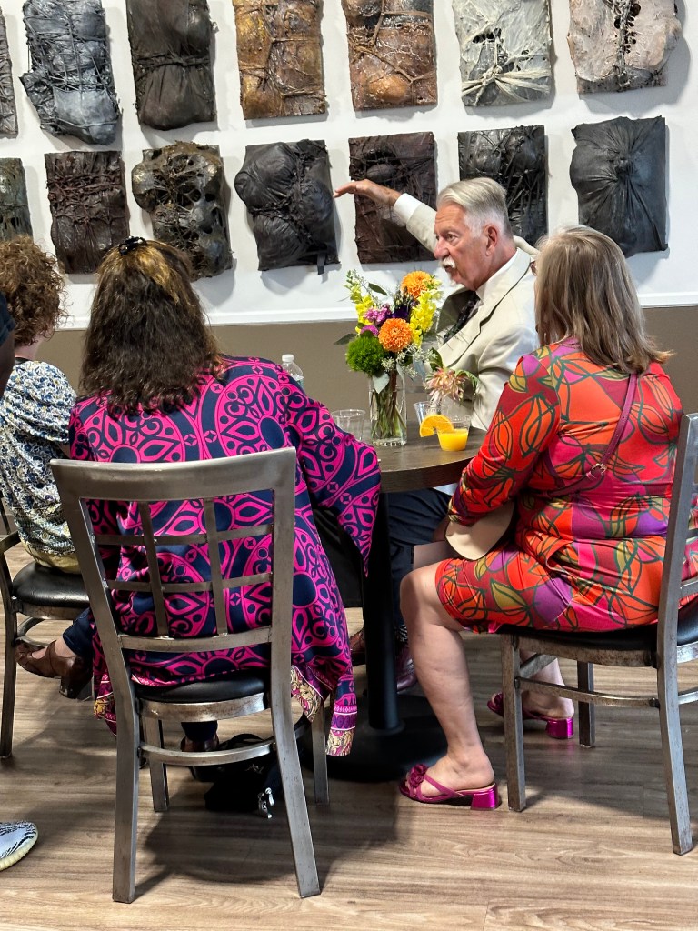 I met Walter at the retirement party of a friend recently. He was both a delightful raconteur and a rapt audience as we shared our experiences traveling Europe and navigating society–both here and abroad. With hubris and humor, Walter revealed pieces of his life with his husband and his artistic journey. I left the encounter wanting more time and conversation with him, so I was thrilled when our mutual friend invited me to the opening of Walter’s art exhibit.
