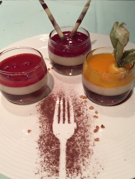 And now…we are greeted at the door with the Luxembourg salute–three kisses beginning on the left side (unlike the two-kiss Italian welcome beginning on the right cheek–more later about greetings gone awry!), we can coax a smile from grumpy Pasquale, we receive a complimentary lemoncello at the end of the evening. When introducing our friends to Our Restaurant, they are welcomed as generously as we. On such an occasion, I asked the maitre d’ to take a photo of us, so he cheerfully took my phone to snap of this (not so flattering) photo instead of a pic of our group!